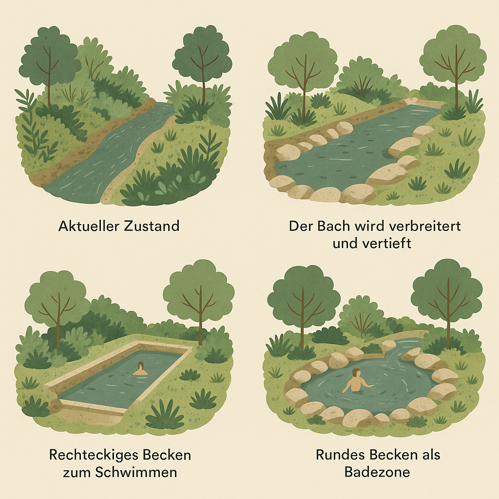 • Abkühlung & Erfrischung im Sommer – ökologisch und ohne Chlor und Chemie (das Wasser bleibt relativ kühl im Bach)