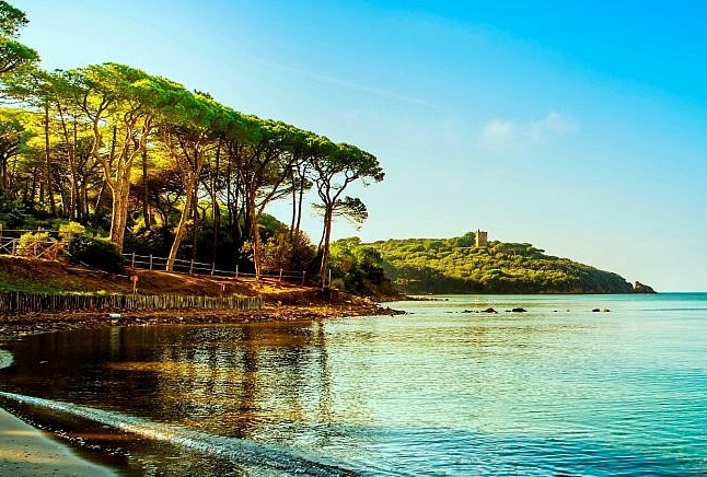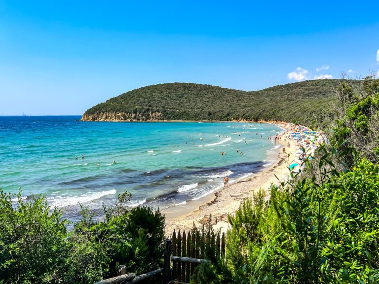 Einer der schönsten Strände der Toskana – kristallklares Wasser und weißer Sand, der unter den Füßen leise klingt wie eine Violine. Am Weg dorthin besucht man „Saba Formaggi„, wo man den besten Pecorino der Maremma erwerben kann.