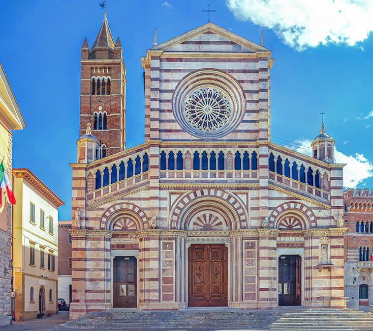 Charmante Altstadt Grosseto mit alten Stadtmauern, ruhigen Gassen und dem Dom San Lorenzo ist ideal für einen Stadtbummel mit Aperitivo im „Perlage“ und Abendessen im Ristorante „Al Numero Nove„.
