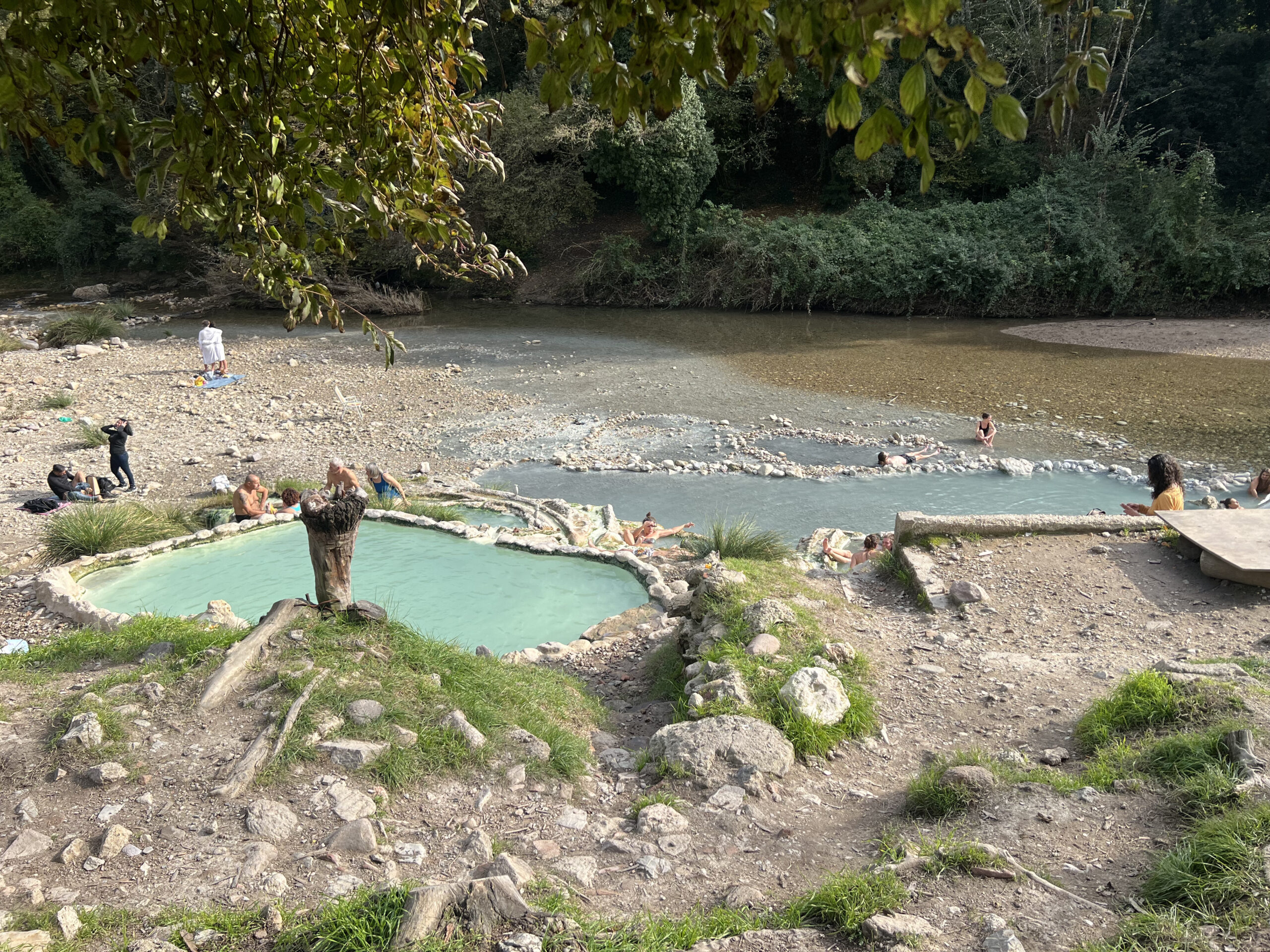 Schwefelhaltige Thermalquellen mitten im Grünen und unten ein kühlender Bach. Kostenlos zugänglich, perfekt zum Entspannen – besonders entspannend im Frühjahr oder Herbst (google-maps).