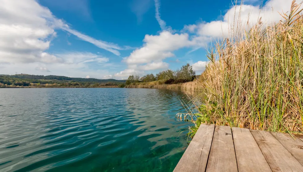 Der Lago dell’Accesa liegt versteckt inmitten der sanften Hügel der Maremma wie ein geheim gehütetes Juwel. Umgeben von alten Bäumen, deren Zweige sich zärtlich im Wasser spiegeln, scheint die Zeit hier stillzustehen. Sein kristallklares, türkisfarbenes Wasser lädt zum Träumen ein – ein Ort, an dem sich Himmel und Erde berühren. Der Duft von Pinien liegt in der Luft, das leise Rascheln der Blätter begleitet das Herzklopfen verliebter Seelen. Hier spürt man die Magie der Toskana – still, berührend, unvergesslich.